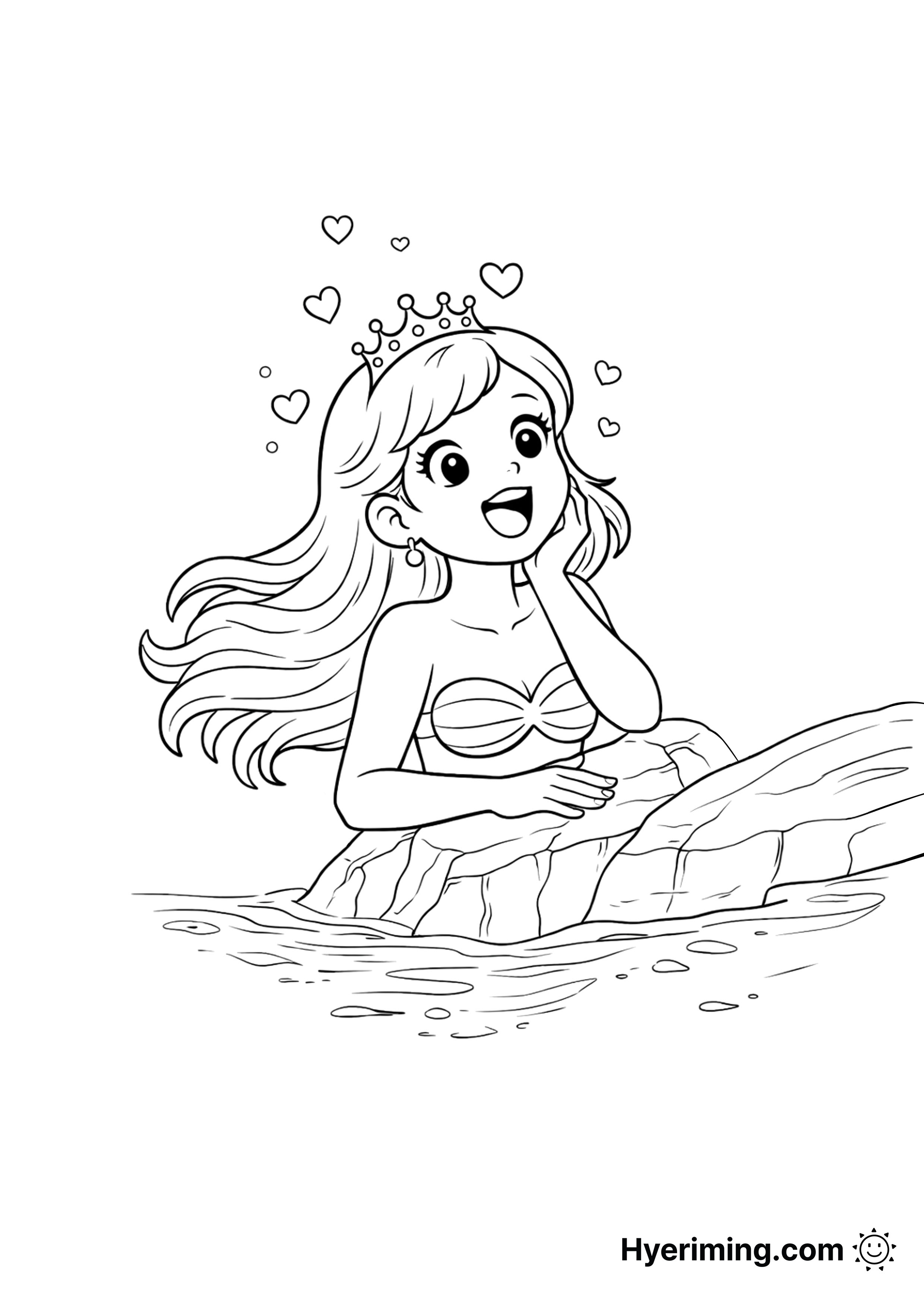 A mermaid coloring page showing a mermaid in love.
