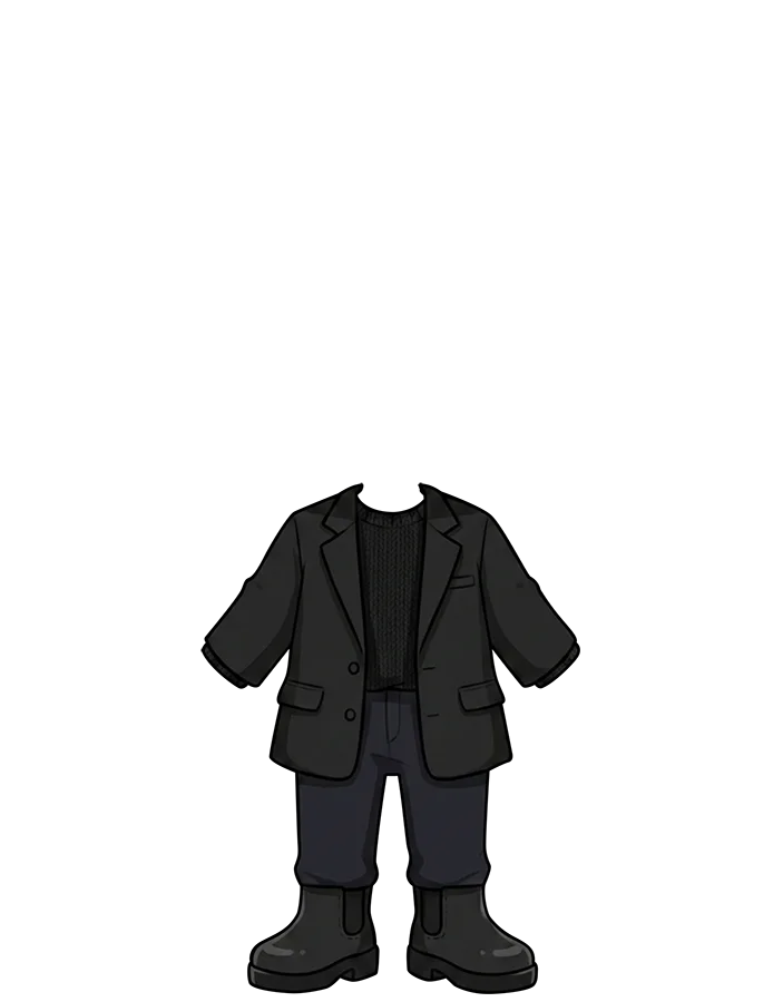 시크한 블랙 블레이저와 첼시 부츠로 완성한 남자 아이돌의 댄스 연습실 사복 패션입니다. 도안을 다운받아 아이돌 종이인형 옷입히기 놀이를 즐기며 나만의 최애를 꾸며보세요.