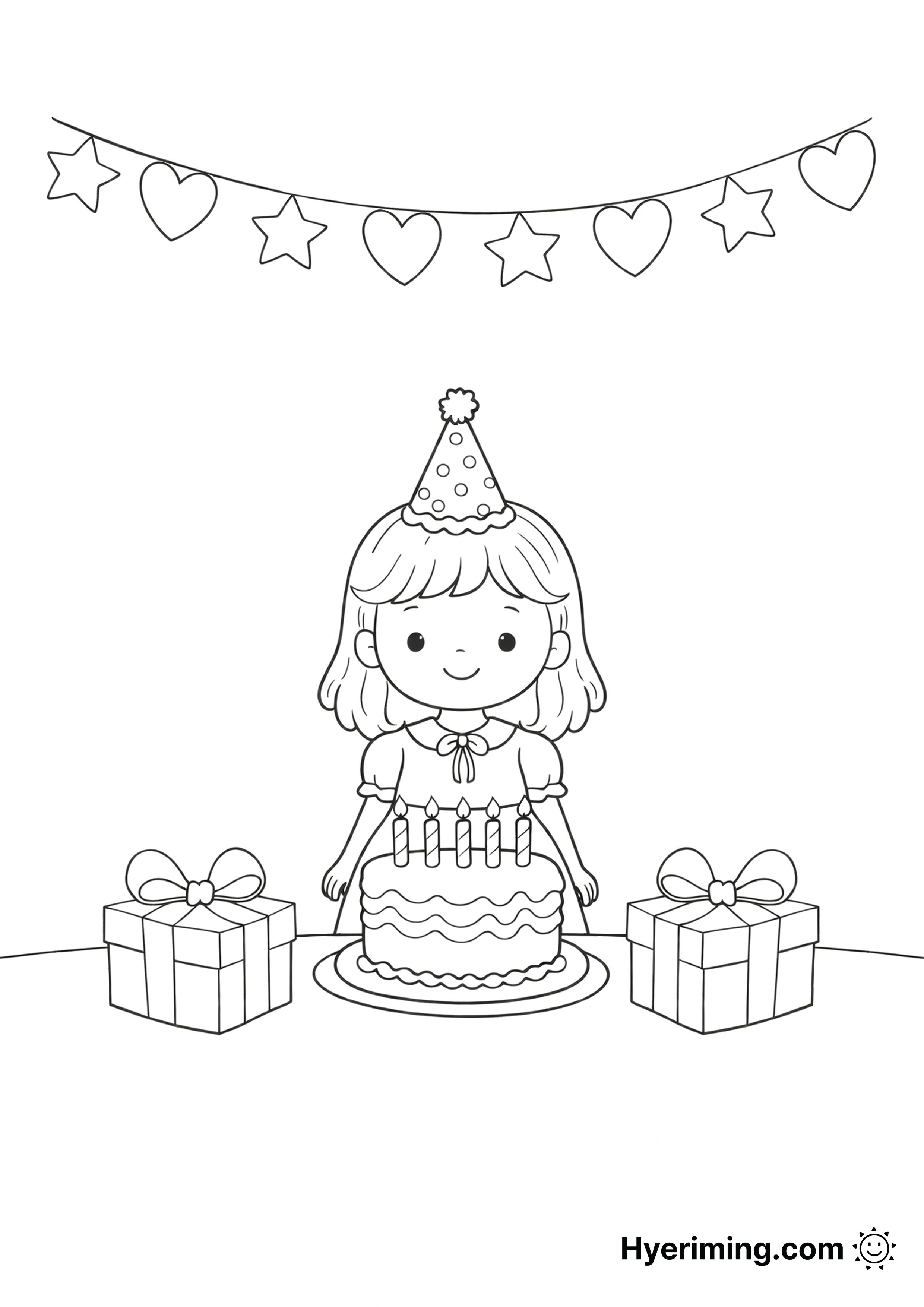 여자 어린이를 위한 생일파티 색칠 도안입니다.