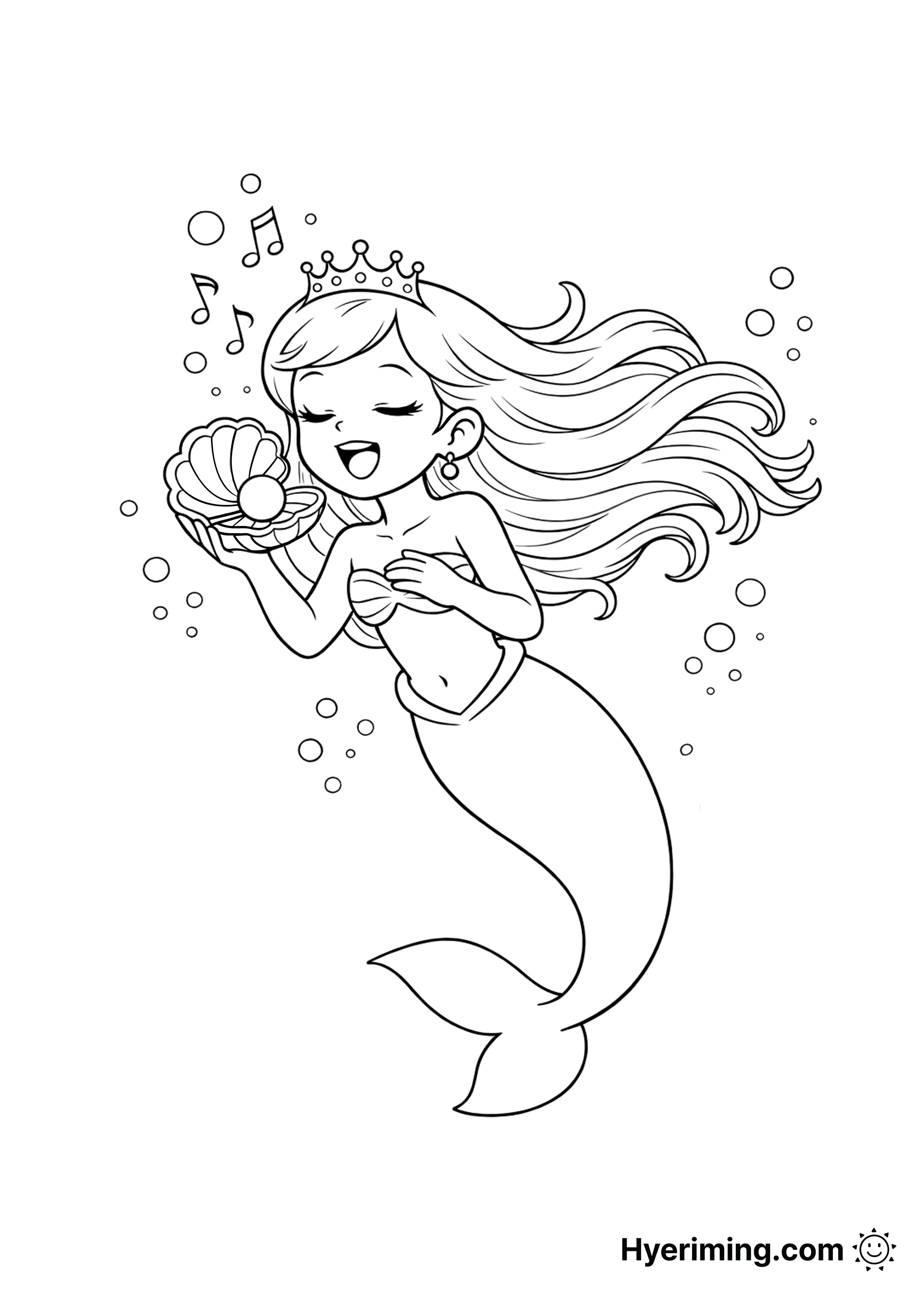 조개를 들고 노래하는 인어공주를 표현한 감성적인 색칠공부 도안입니다.