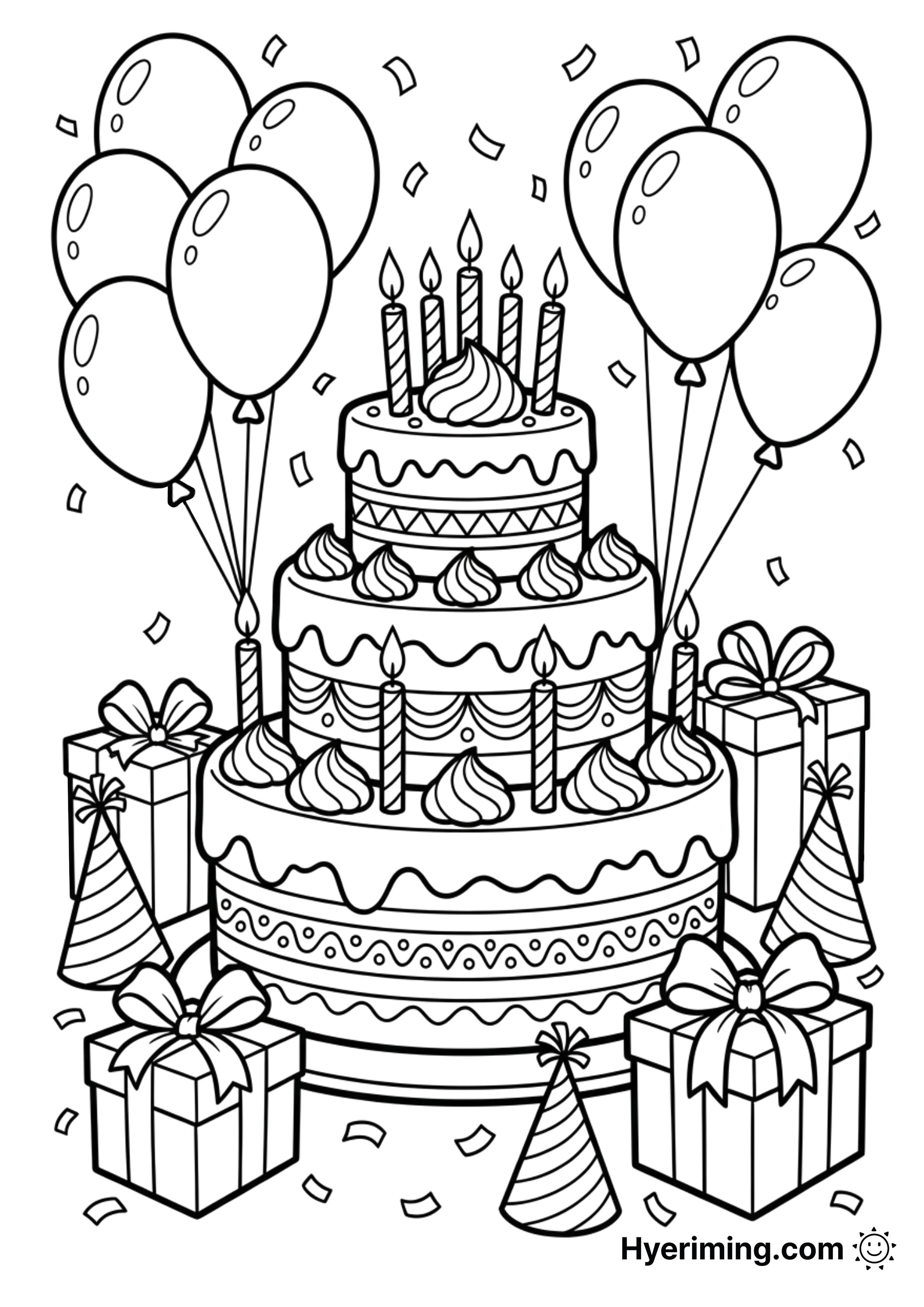 3단 생일 케이크 색칠공부 도안