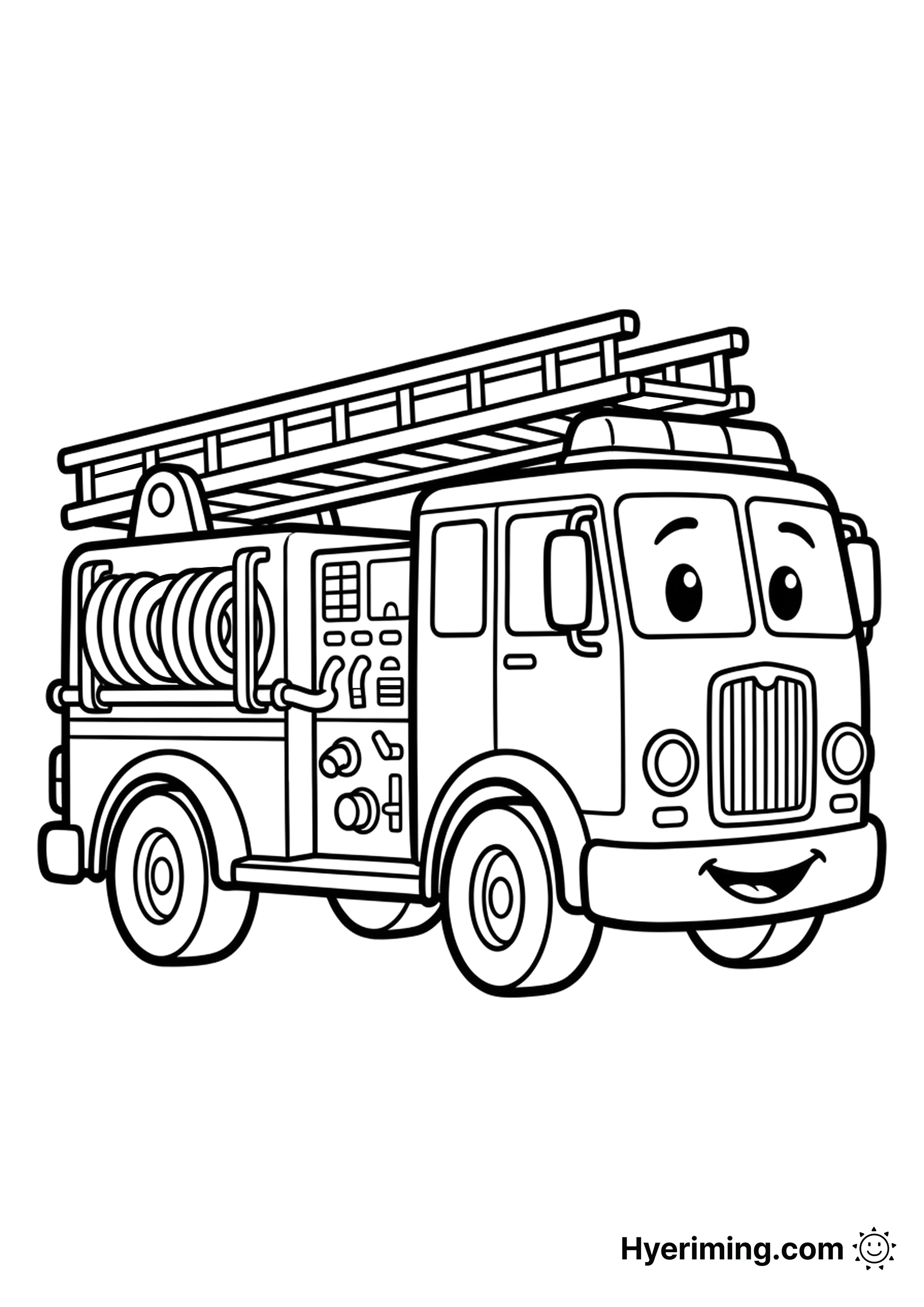 소방차 캐릭터를 색칠할 수 있는 탈것 색칠공부 도안입니다. 안전과 직업 학습에 활용할 수 있어요.