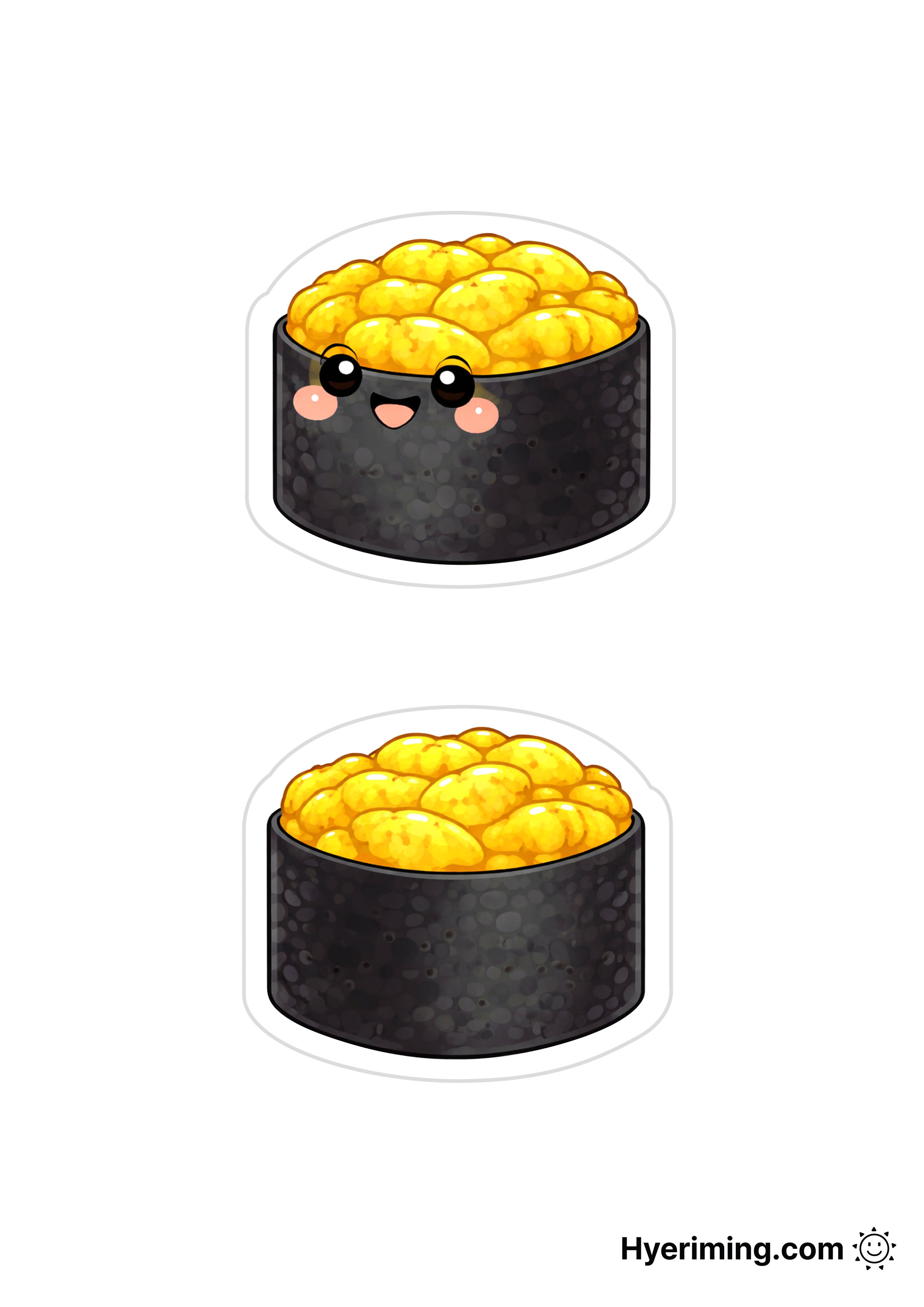 성게알 군함초밥에 표정을 더한 캐릭터형 종이 스퀴시 도안입니다.